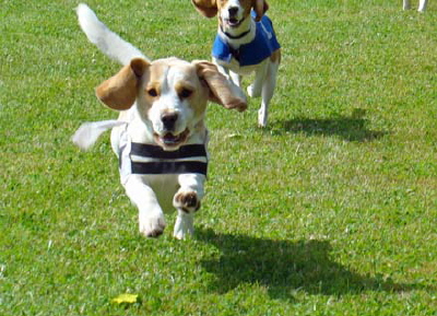 Abbey on her way to winning the bitch beagle racing trophy.....