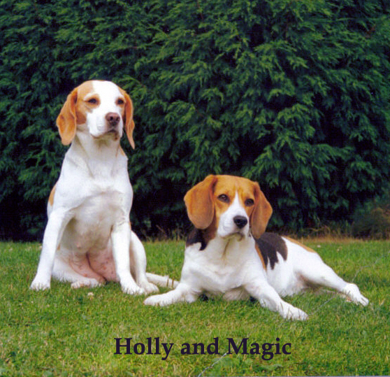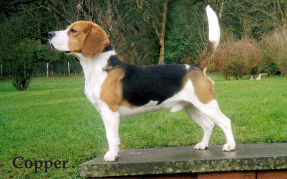 My love affair with beagles started in 1986 thanks to my daughter Julie. After going to the shows with me and showing an interest while I was showing my Labs, I decided when she was 12 years old that she could have her own dog. Having looked around the rings she thought a beagle would be a good choice. After I had a look I thought, “ small, short coat, should fit in fine with the labs”....little did I know what I was letting myself in for! So along came “Echo” (Norcis Idress) a blanket tri boy with a mind of his own. He wasn’t the easiest of dogs to train, but full of character (I could write a book about the things he got up to.) He did a lot of winning at Championship shows and Open shows and always showed great up to a ripe old age of 15 ending his carreer by winning Best Veteran dog at the Beagle Club Champ show. Next came “Magic”(Norcis Night Magic) - she was a very sweet beagle who loved everyone. She was not shown much as her movement was never right after she hurt her leg at 4 months - but she still managed to get her stud book number. We had her for 16 years and she gave us a lot of pleasure. I then went to see a litter of pups with Mrs Isobel Miller that was sired by her dog Ch Mistylaw Chuckle of Millmar JW (“Mac”) with no intention of having one. That was until I saw and fell in love with a tan and white puppy called Dorabell Galaxy. “Holly”was the snob amongst my beagles, always thought she was better than the others. I’m sure she went around all day with her nose in the air! She was a great show girl who had a presence about her that made people notice her and we had the joy of owning her for 16 years. Katherine Cooper (Caurniehill) used Echo at stud producing a litter of ten bitches, one of which I kept - Caurniehill Rainbow. Again ”Megan” was not shown much as she did not like the ring, but of all the beagles I have owned she was the most biddable one - loved to please you , could do nothing wrong. It was then I decided to breed my own ( first and last!) litter, so I mated Caurniehill Rainbow (Megan) to Haughmill Sergeant Pepper. From the resultant litter of six I kept two boys - Cachalot Magician (“Merlin”) and Cachalot Batchelor Boy (“Butch”). They both had very impressive show careers and, at 16, they are now both enjoying their retirement. Craigmount Almost an Angel at Cachalot (“Cass”) was the next one to join our gang. She ALMOST lived up to her name, and at 11 she is also enjoying her retirement. Then came my present day show team ; Annavah Gallant at Cachalot (“Copper”), Craigmount Creag Pitridh (“Inca”- as well as showing she also enjoys going to the beagle racing), and my tan and white baby Craigmount Touch of Gold at Cachalot (“Abbey”) - she is the cheeky one, and so far her successes include two Best Hound Puppy wins and a Best Puppy in Show. Over the years they have given me a tremendous lot of fun. Beagles past (the ones that are now in doggy heaven - I know there is a doggy heaven, otherwise why would GOD spelt backwards be DOG ?) and the present, whether showing, walking or going on holiday with the gang. Little did I know when I got that first beagle 20 years ago that I would fall head over heels in love with them.