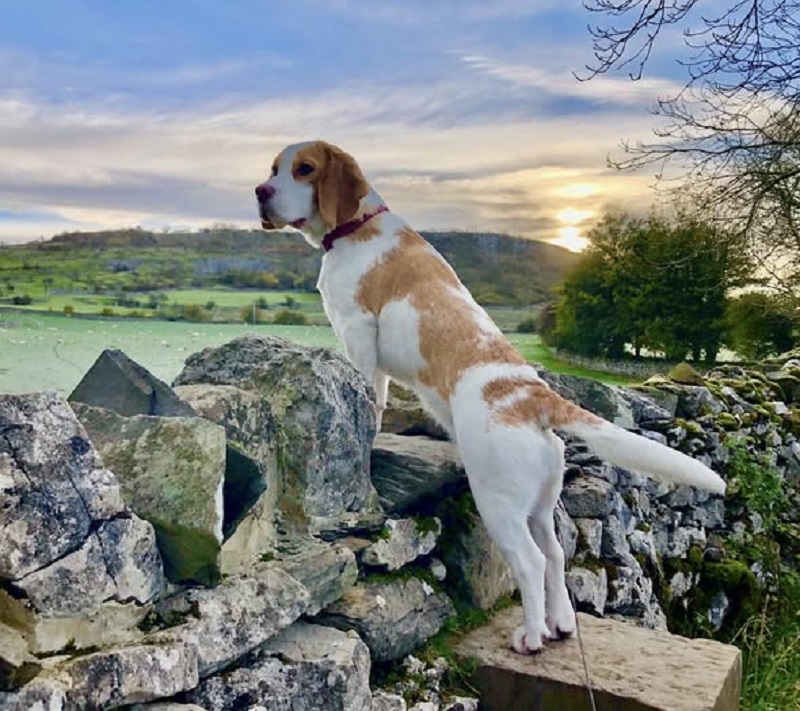 Christine Hartland’s “Hazel” enjoying her early morning walk and the view in this lovely autumn sunrise photo.